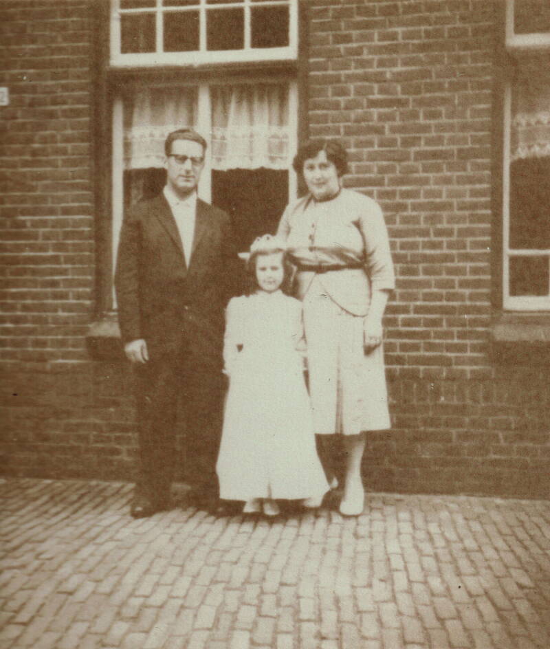 Hertenkampstraat 8 links en midden en rechts met nichtje Miep uit Eindhoven, staande in de auto van ome Piet.