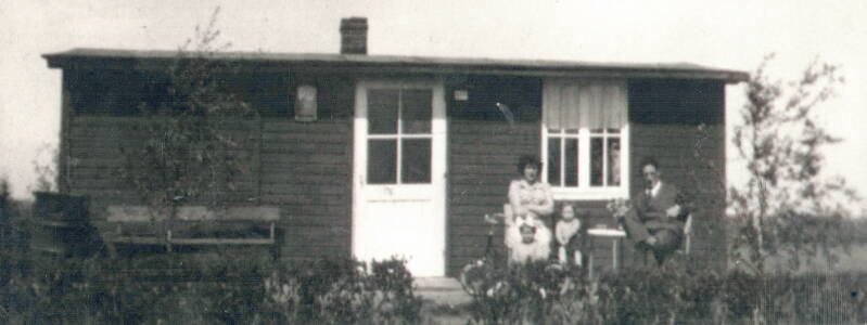 In feite, als ik het goed begrepen heb, heeft Piet een bouwkeet op de kop getikt en zo vertimmert dat erin gewoond kon worden, en dat is op zich al een prestatie om de woningnood, zelfs ook in die tijd, te omzeilen. Het was wel wat achteraf en daar was Mientje weer minder blij mee, maar was niet bang want als er gevaar dreigde hing daar altijd nog een geweer langs de deur. En zoals ik uit betrouwbare bron vernomen heb was Mientje niet te flauw om hem te gebruiken ook.